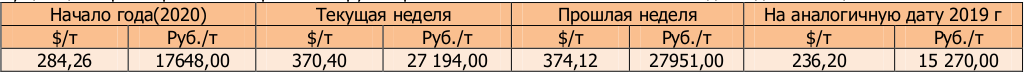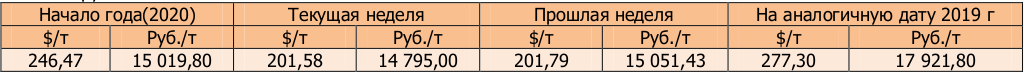 Цена продовольственный ячмень на мировом рынке на этой неделе была отмечена на бирже NCDEX Kolkata. Торги по состоянию на 12.05.2020 года составили 201,58 $/t или 14795 руб./тн, что по сравнению с прошлой неделей меньше в валюте и в рублях.