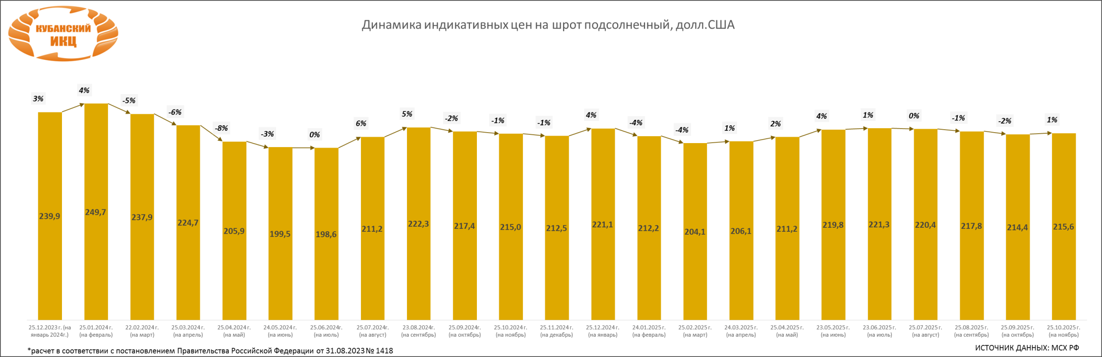 Индикативные цены на шрот подсолнечный на 25.10.2025