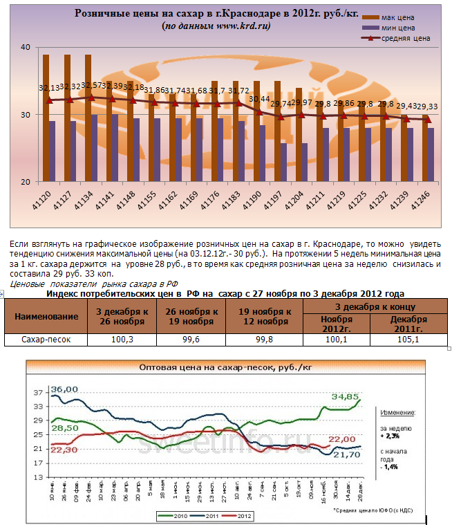 Далее проанализируем ценовую ситуацию на рынке сахара в Краснодарском крае