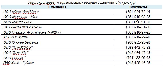 На момент подготовки информации, закупочные цены в Краснодарском крае были отмечены в следующих пределах: