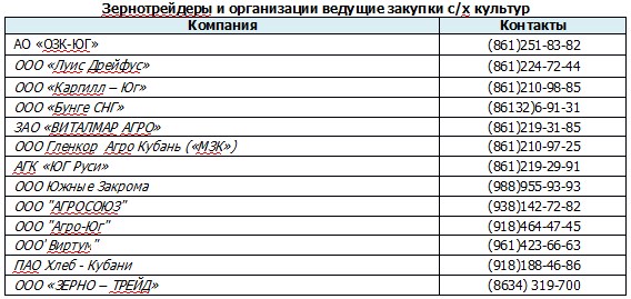На момент подготовки информации, закупочные цены в Краснодарском крае были отмечены в следующих пределах: