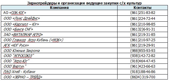 На момент подготовки информации, закупочные цены в Краснодарском крае были отмечены в следующих пределах: