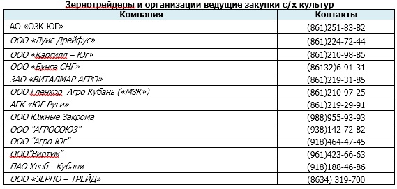 На момент подготовки информации, закупочные цены в Краснодарском крае были отмечены в следующих пределах: