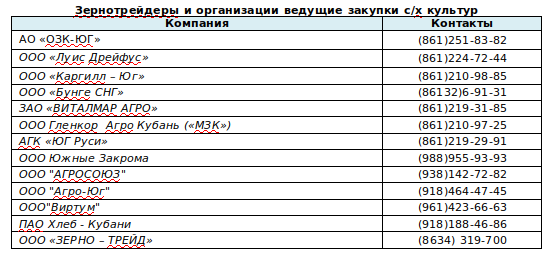 На момент подготовки информации, закупочные цены в Краснодарском крае были отмечены в следующих пределах:
