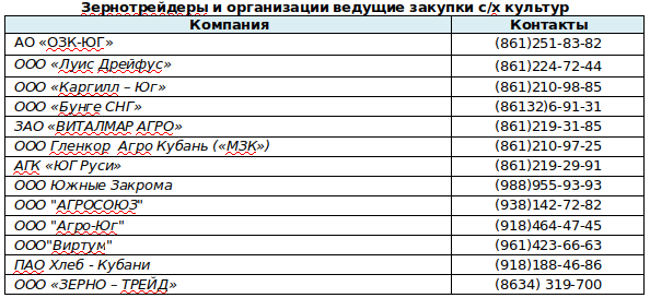 На момент подготовки информации, закупочные цены в Краснодарском крае были отмечены в следующих пределах: