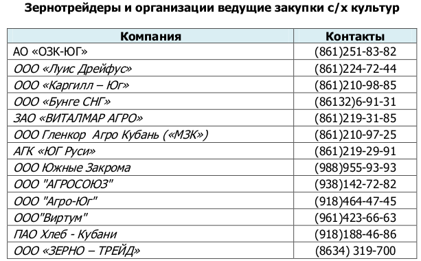 На момент подготовки информации, закупочные цены в Краснодарском крае были отмечены в следующих пределах: