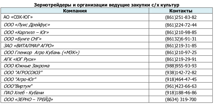 На момент подготовки информации, закупочные цены в Краснодарском крае были отмечены в следующих пределах: