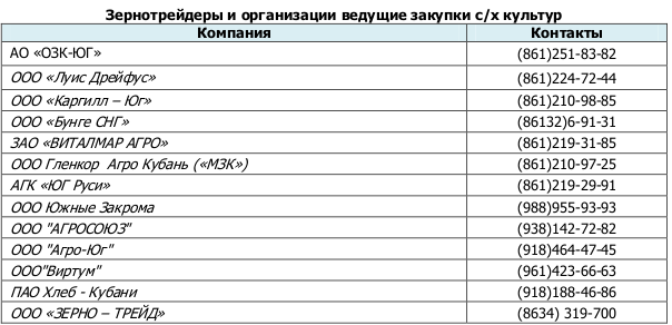 На момент подготовки информации, закупочные цены в Краснодарском крае были отмечены в следующих пределах: